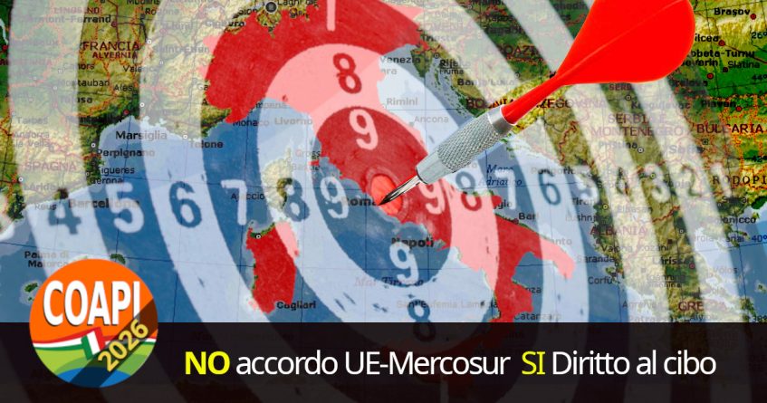 Questa sera (23.1.26) si tiene l’incontro su invito del COAPI con i rappresentanti delle reti di cittadinanza, rappresentanti dei consumatori e delle altre categorie sociali impegnate nella produzione e distribuzione del cibo . L’obiettivo è definire insieme il percorso da seguire nei prossimi giorni, culminando in una grande mobilitazione a Roma da tenere nelle prossime settimane