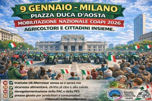 Agricoltori e Cittadini di fronte alla stessa crisi ed agli stessi nemici Milano, 9 gennaio 2026 – MANIFESTAZIONE DI TRATTORI CON PRESIDIO Avviamo la mobilitazione nazionale unitaria di Produttori e Cittadini per il diritto al cibo Il COAPI – Coordinamento Agricoltori e Pescatori Italiani, chiama a raccolta agricoltori, cittadini e istituzioni in Piazza Duca d’Aosta, …