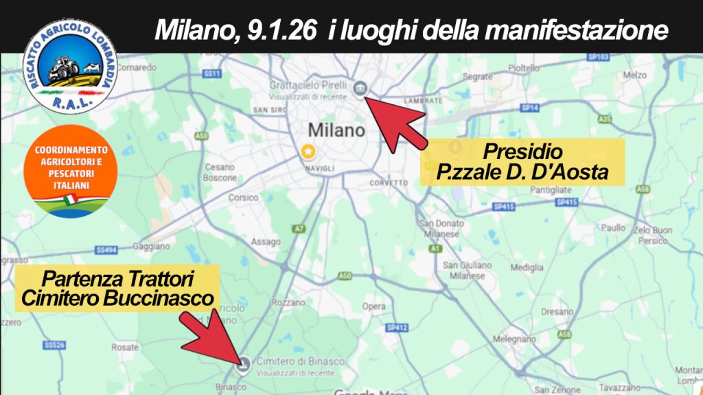 i trattori attraversano Milano fino a Piazza Duca D’Aosta - Dalle ore 12.30 circa – Arrivo a Piazza Duca D’Aosta (https://maps.app.goo.gl/7kNPWdbBvQEcqKXk7)
